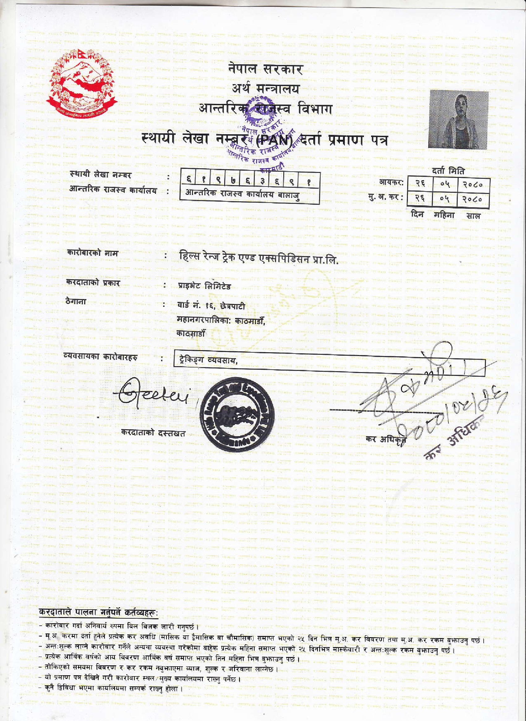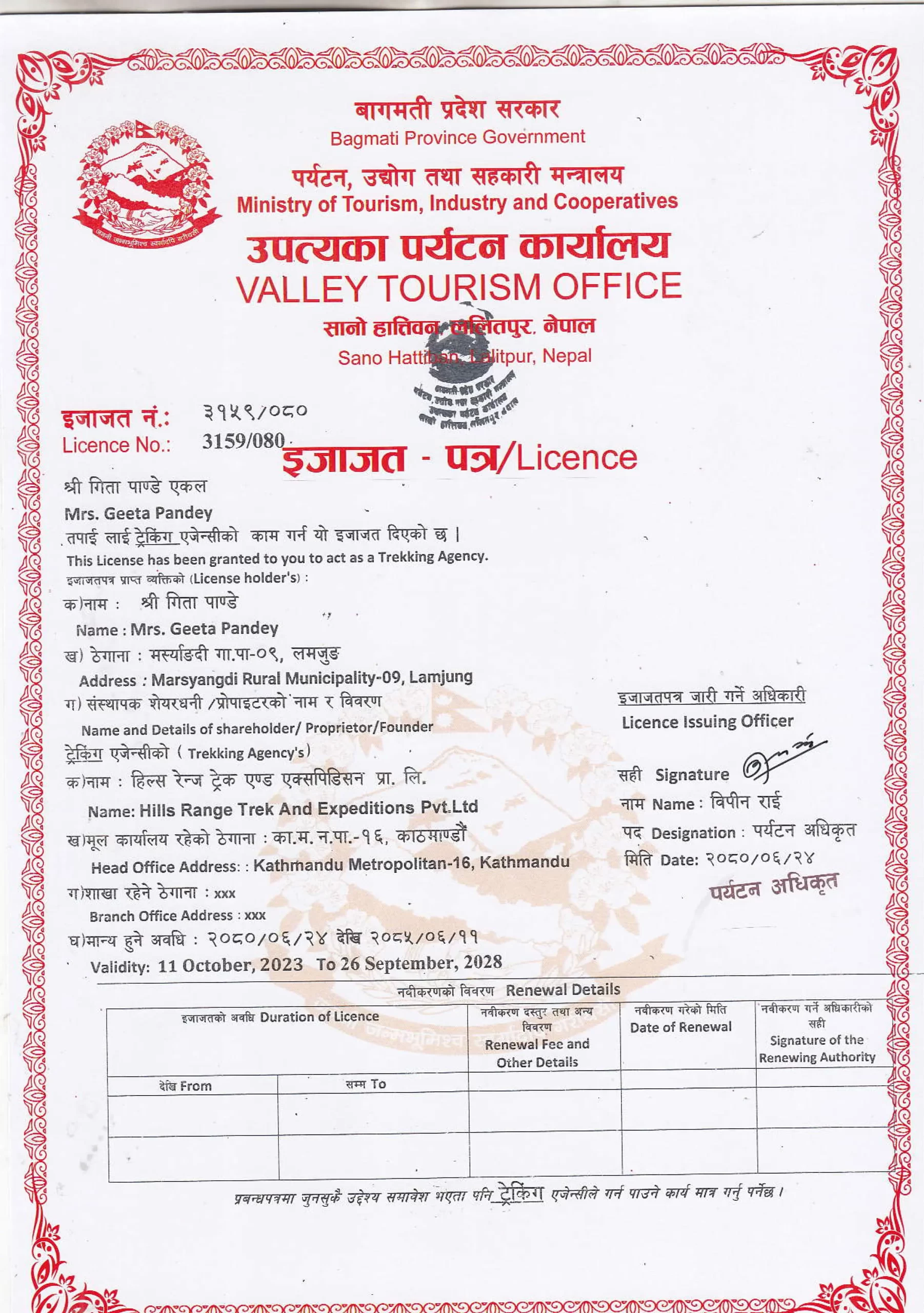 Issued: 2080 BS (2023 AD)Hills Range Trek & Expeditions Pvt. Ltd.